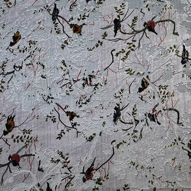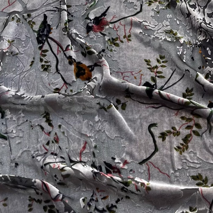 Italian Fashion Designer Botanical Gray Non-Stretch Burnout Mulberry Silk Devore Velvet DS26536 -8 Momme