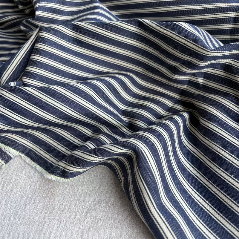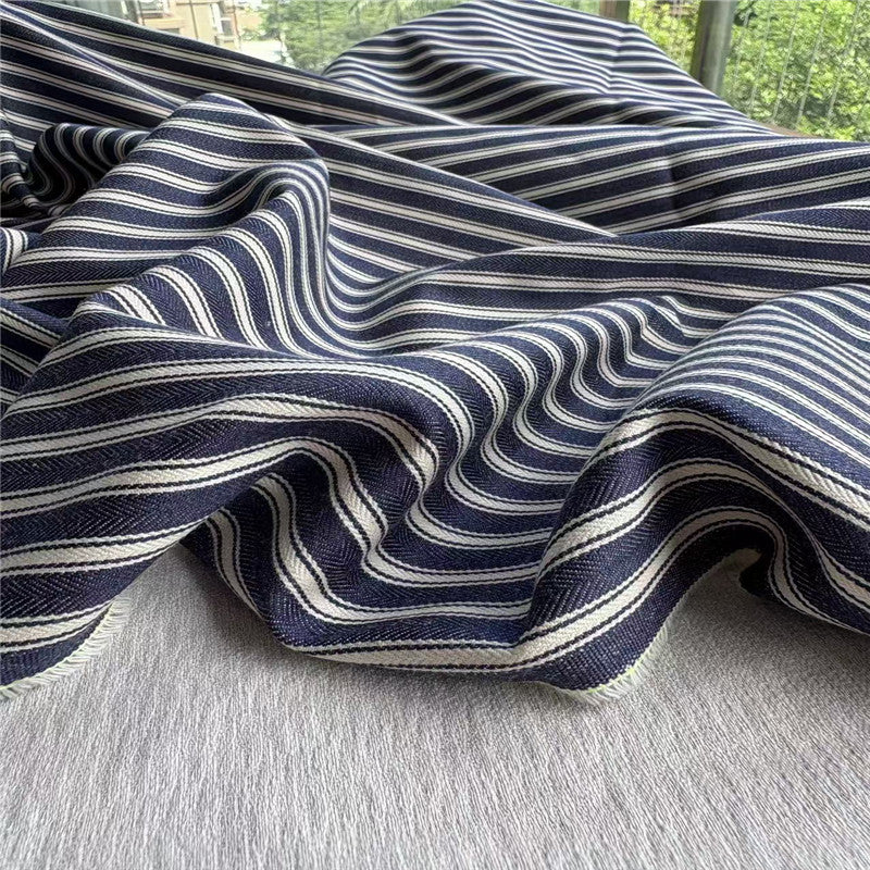 Japanese Fashion Designer Stripes Blue Non-Stretch Linen Cotton Blended Herringbone DS24621