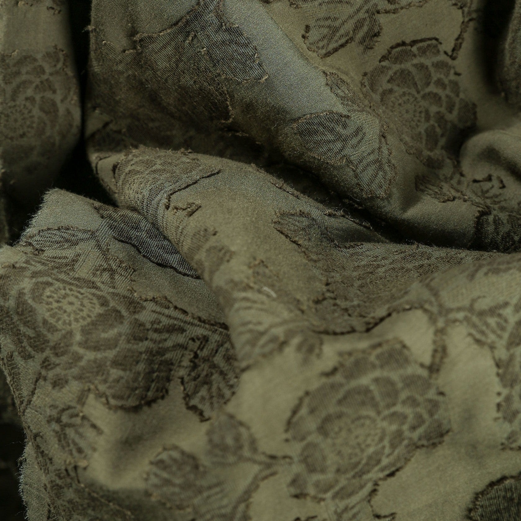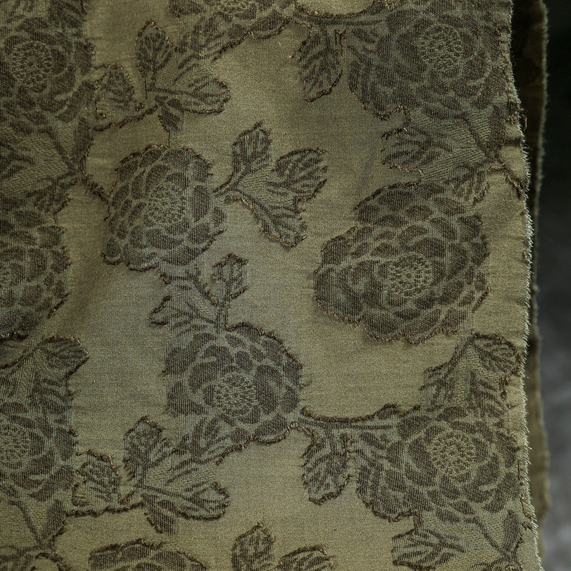 Japanese Luxury Designer Floral Green Non-Stretch Sand Washed Cotton Linen Blended Jacquard DS43528
