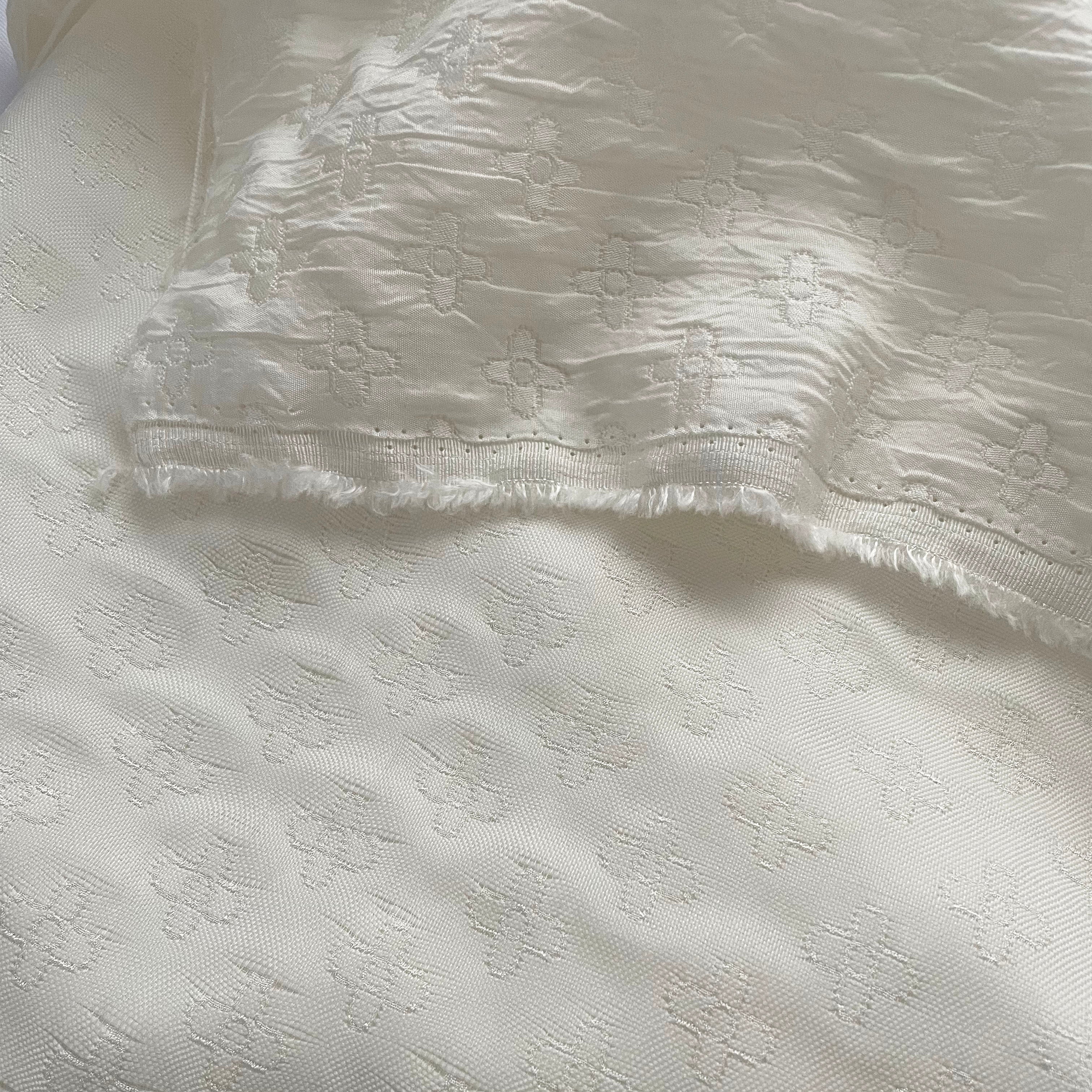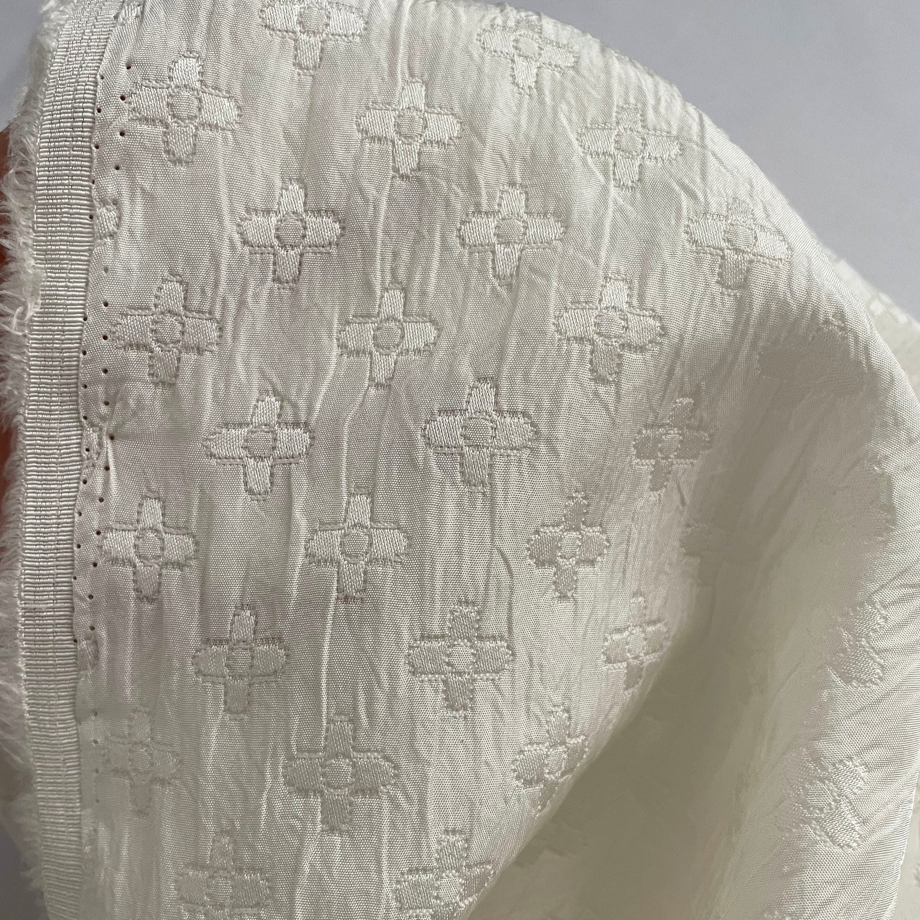 Korean Fashion Designer Geometric White Non-Stretch Crinkled Cotton Dobby Jacquard DS16531