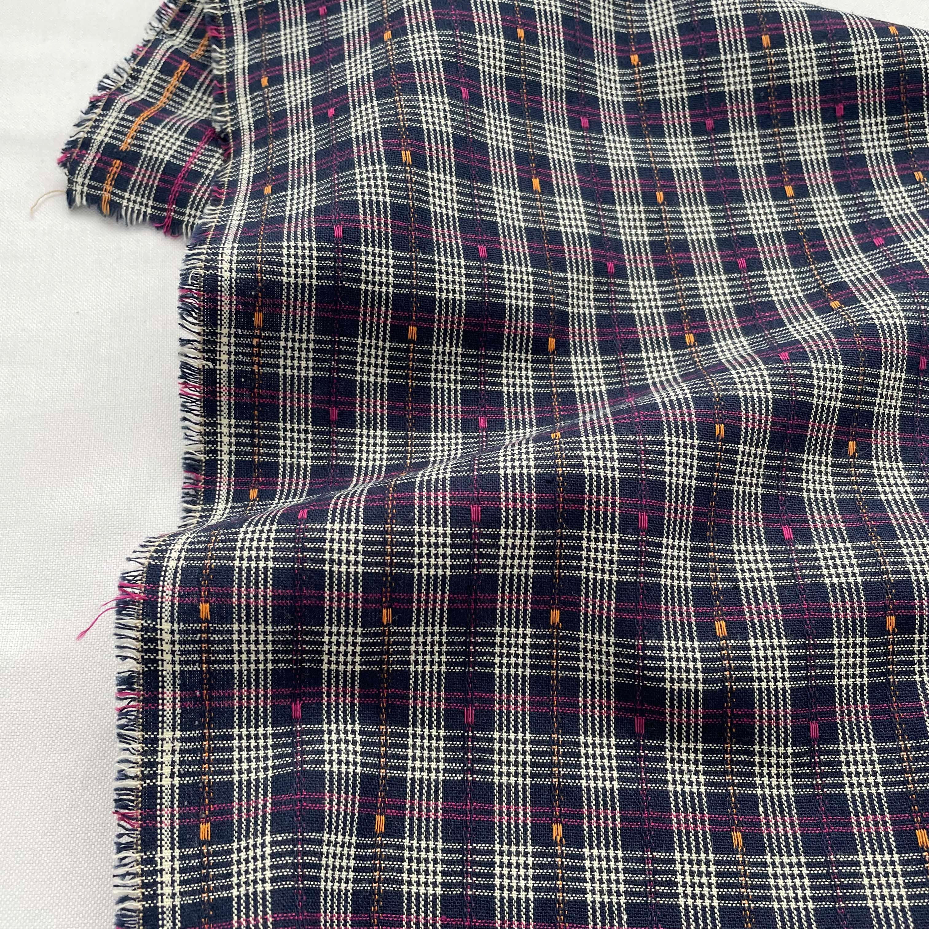Korean Fashion Designer Plaid Blue Non-Stretch Cotton Dobby Jacquard DS16545
