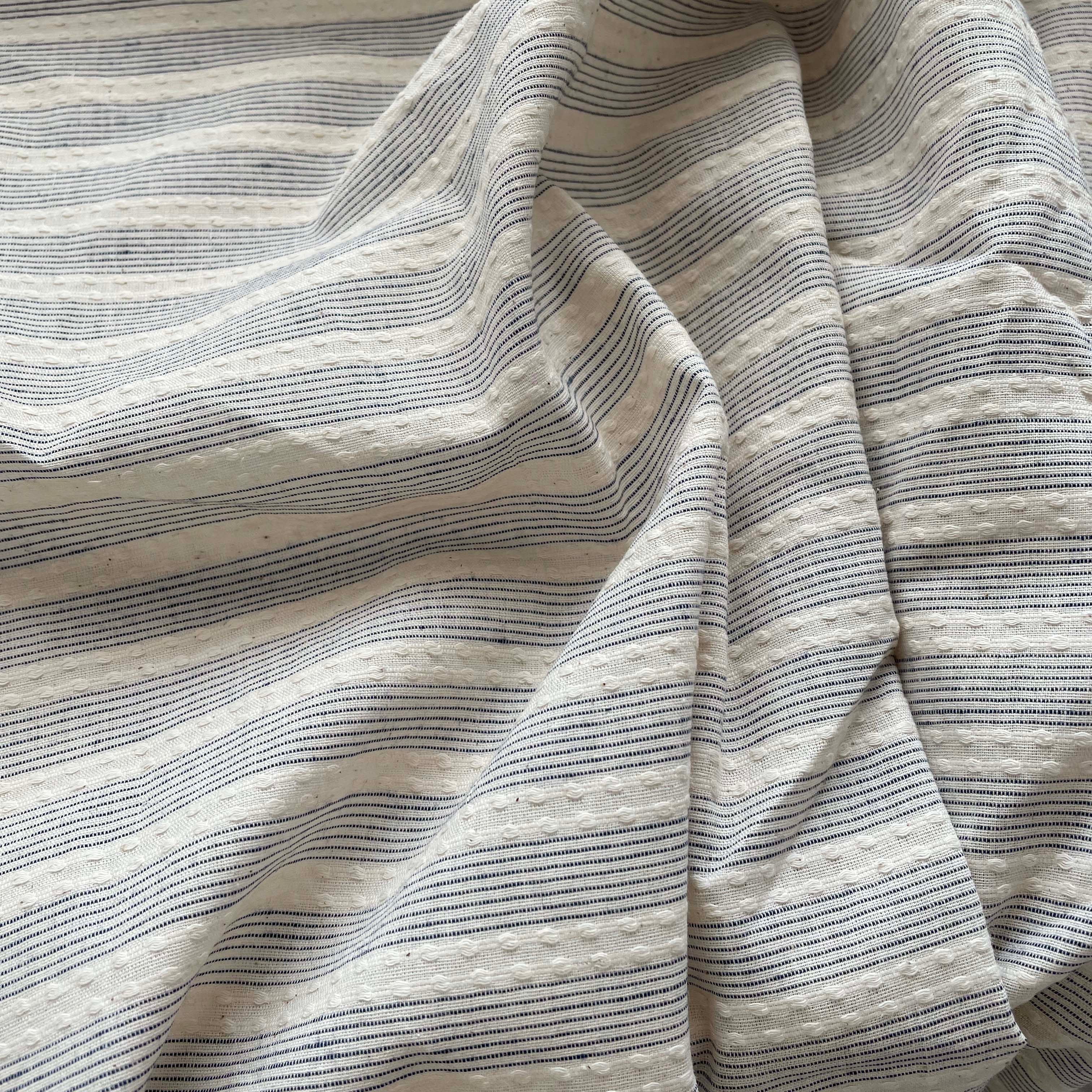 Korean Fashion Designer Stripes Blue Non-Stretch Cotton Dobby Jacquard DS16543