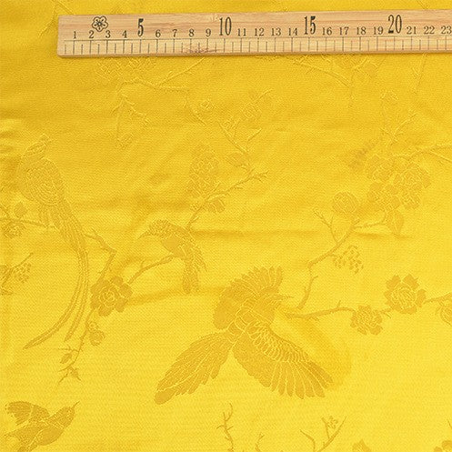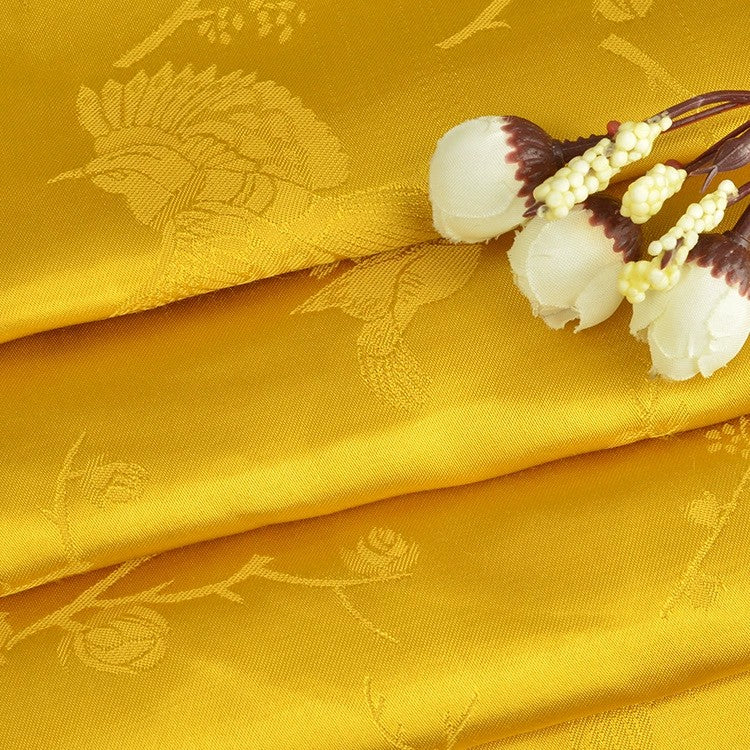 Japanese Fashion Designer Botanical Yellow Non-Stretch Viscose Rayon Blended Jacquard Satin DS42505