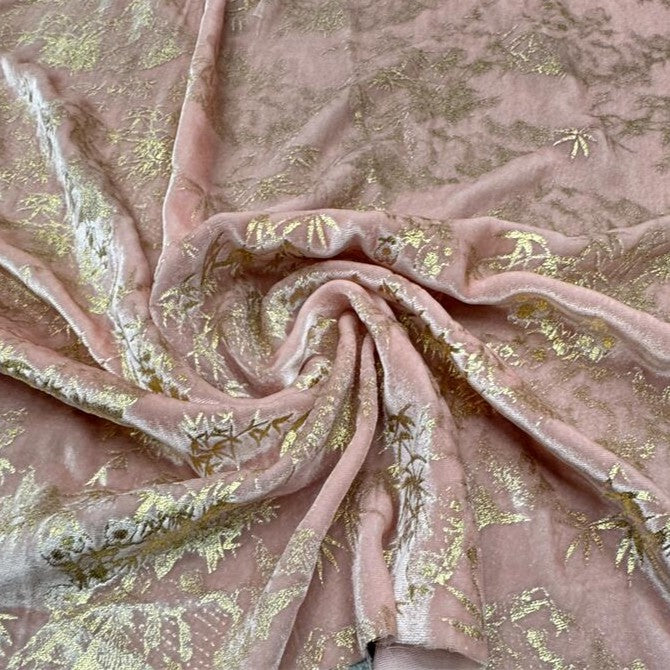 Japanese Luxury Designer Botanical Pink Non-Stretch Foil Print Mulberry Silk Velvet DS28517 -40 Momme